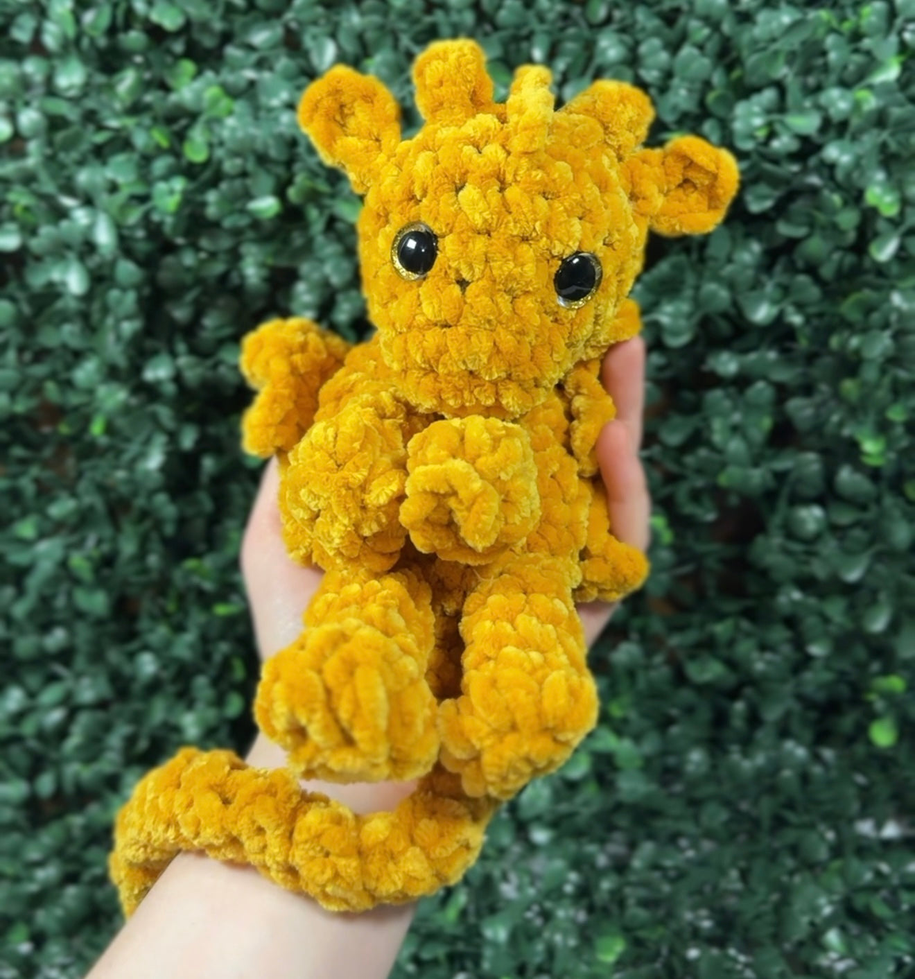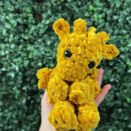 Meet your new pocket-sized guardian — this palm-sized dragon snuggler is lovingly handmade with soft, high-quality yarn for maximum cuddliness and charm. Measuring just a few inches tall, this miniature mythical friend features tiny wings, a long wrap-around tail, and stitched details that bring its gentle personality to life. Perfect for stress relief, desk companions, or gifting to fantasy lovers, each dragon is one-of-a-kind and crafted with care. Whether you're adding a whimsical touch to your day or giving someone a small token of comfort, this snuggler is a magical reminder that even the tiniest creatures can offer the biggest comfort.