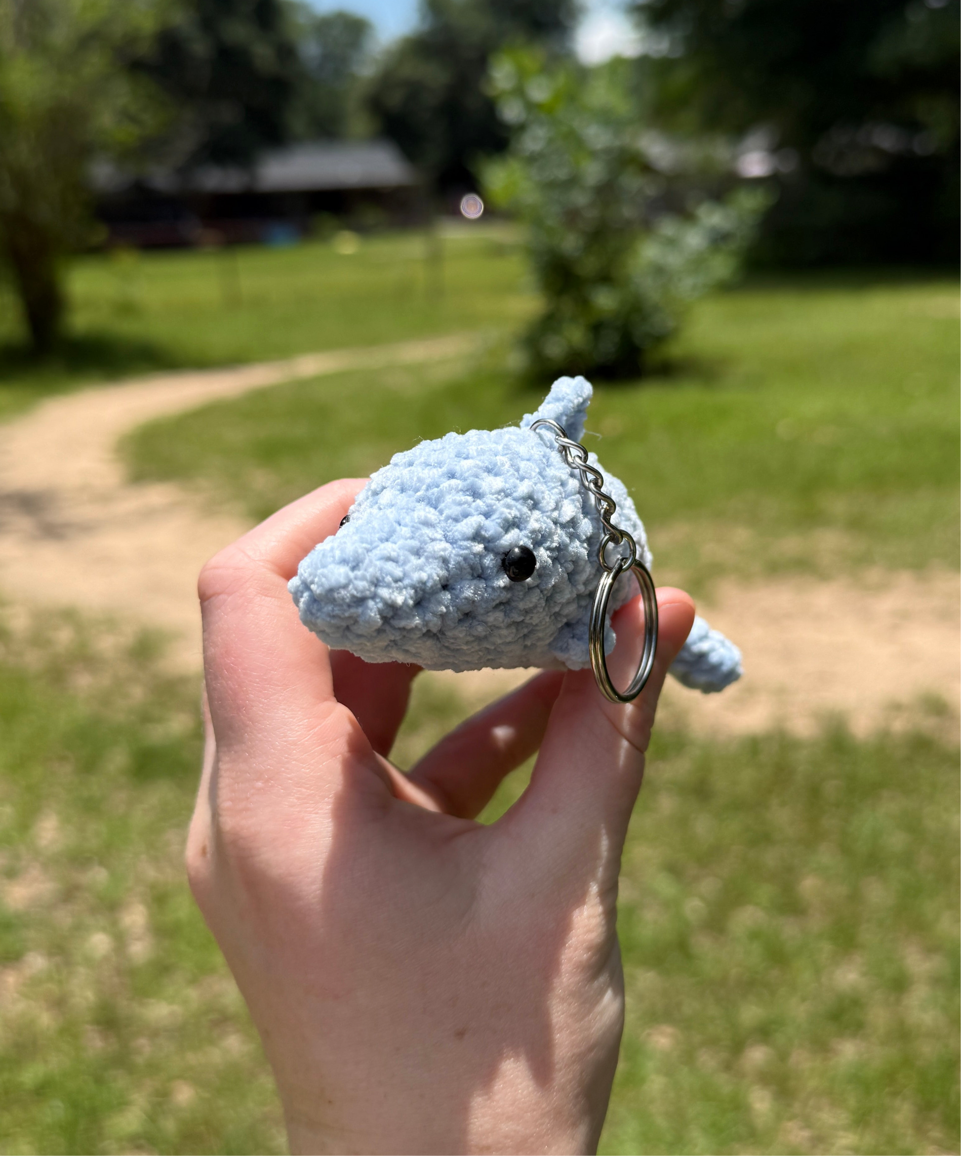 Add a splash of ocean charm to your accessories with this adorable crocheted dolphin keychain! Lovingly handmade with soft, high-quality yarn, this mini dolphin features tiny fins, a curved tail, and sweet eyes that captures the playful spirit of the sea. Lightweight and durable, it’s perfect for attaching to your keys, backpack, or purse. Whether you're a marine life lover or just want a touch of whimsy on the go, this dolphin keychain makes a delightful gift or personal keepsake.
